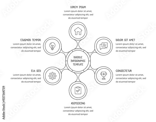 Fototapeta premium Doodle infographics - hand drawn circular diagram template with 6 elements,...