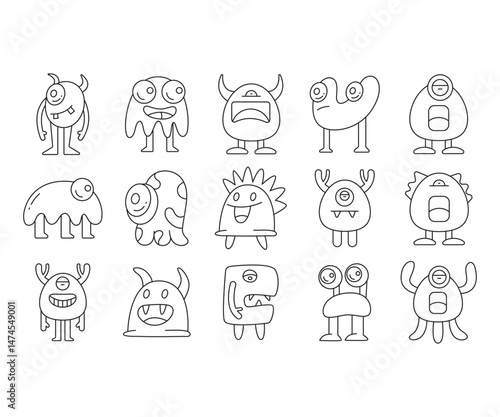 © bigpa, Fototapeta premium doodle monster character line icons set