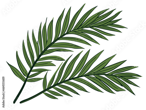 Fototapeta premium Doodle Palm branches, cartoon sticker, sketch, vector, Illustration, minimalistic
