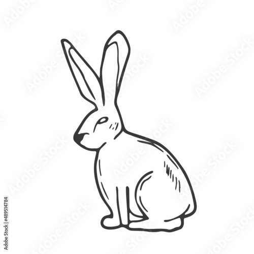 Fototapeta premium Doodle rabbit sketch. ine art hare animal. Forest concept