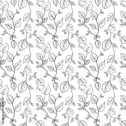 © Benjavisa Ruangvaree, Fototapeta premium Doodle sketch leaf seamless pattern black and white illustration design