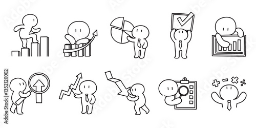 Fototapeta premium Doodle Style Business Data Analysis and Success Icons Collection