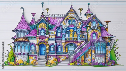 © StockSavvy, Naklejka premium Doodle-Style Enchanted House with Playful Details