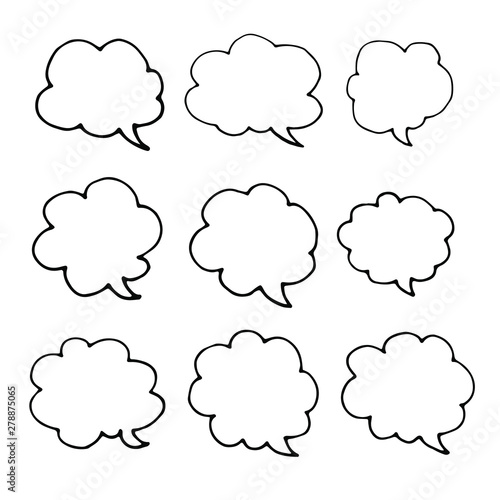 © Marina, Fototapeta premium Doodle style thinking clouds set. Hand drawn speech bubbles. Sketch graphic elements.