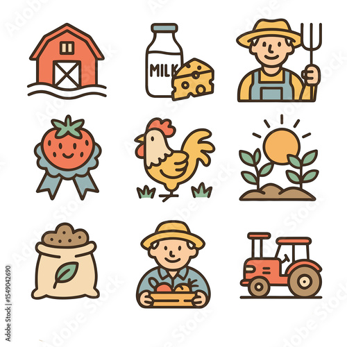 © WIKKI.White, Obraz premium Doodle vector icons set featuring farm animals and agriculture