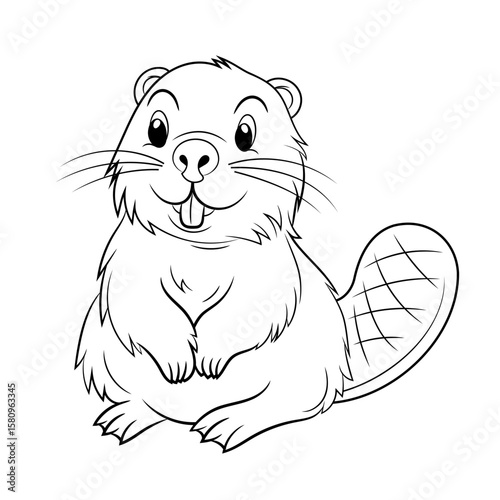 © Voysla, Obraz premium Doodle Vector Illustration of a Beaver in Cartoon Style. Isolated on white background. Perfect for animal-themed design projects, stickers and coloring book.