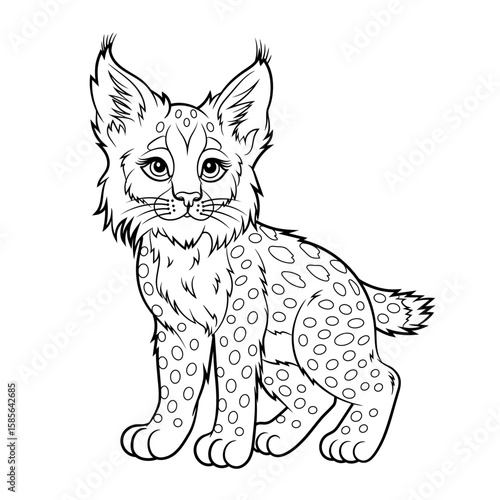 Naklejka premium Doodle Vector Illustration of a Lynx in Cartoon Style. Isolated on white background. Perfect for animal-themed design projects, stickers and coloring book.