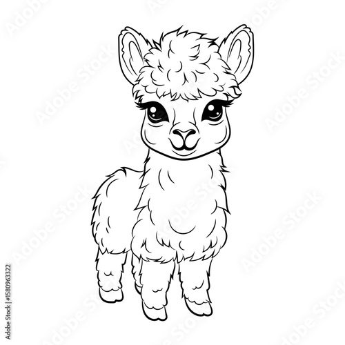 © Voysla, Fototapeta premium Doodle Vector Illustration of Alpaca in Cartoon Style. Isolated on white background. Perfect for pet-themed design projects, stickers and coloring book.