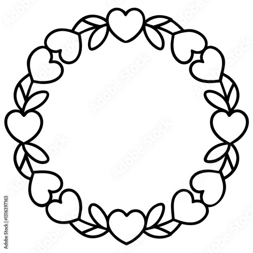 © Zahedul, Fototapeta premium Door wreath with hearts line art vector