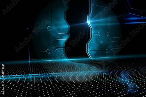 Obraz premium Doorway on technological black background