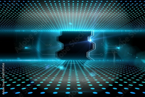 © vectorfusionart, Naklejka premium Doorway on technological glowing background