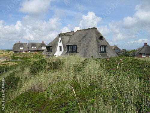 Obraz premium Dorf mit reedgedeckten Häusern auf der Insel Sylt