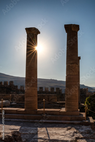 Fototapeta premium Doric columns in Lindos acropolius in Rhodes island in Greece