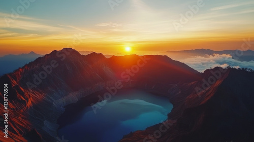 Fototapeta premium Dormant volcanic crater, silent mountains, surrounded by greenery