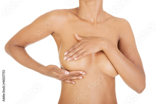 © Piotr Marcinski, Fototapeta premium Dorosła kobieta bada piersi