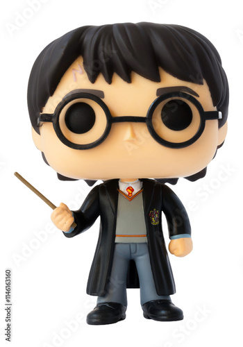 © Esther Hildebrandt, Naklejka premium Dortmund - Deutschland 20. Dezember 2024 Funko Pop Figur Harry Potter - Studio Aufnahme