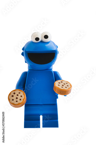 © Esther Hildebrandt, Obraz premium Dortmund - Deutschland 12. Februar 2023 Lego Minifigure Krümmelmonster mit Keksen