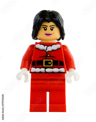 Naklejka premium Dortmund - Deutschland 13. November 2025 - Lego Figur Frau im Nikolaus Kostüm - Studio Aufnahme