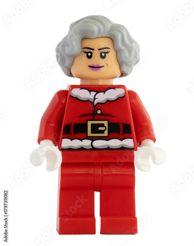 Naklejka premium Dortmund - Deutschland 13. November 2025 - Lego Figur Oma im Nikolaus Kostüm - Studio Aufnahme