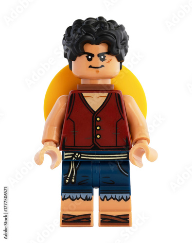 Obraz premium Dortmund - Deutschland 4. November 2025 - Lego Figur Ruffy blickt böse der Serie One Piece - Studio Aufnahme