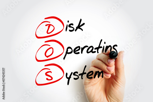© dizain, Fototapeta premium DOS - Disk Operating System acronym with marker, technology concept background
