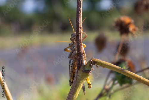 © jeronimoabel, Fototapeta premium dos grillos en planta seca