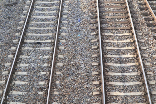 © SOFT LOOK, Fototapeta premium dos vías de tren paralelas al aire libre, rail, vías, ferrocarril, hierro