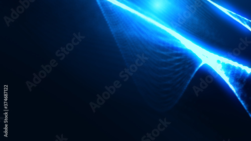 © Papapig, Obraz premium Dot blue wave light screen gradient texture background. Abstract ai technology big data digital background. 3d rendering.