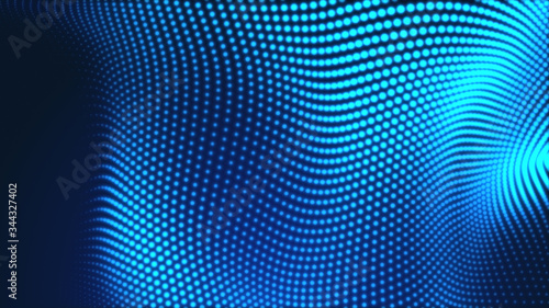© Papapig, Fototapeta premium Dot blue wave light screen gradient texture background. Abstract technology big data digital background. 3d rendering.