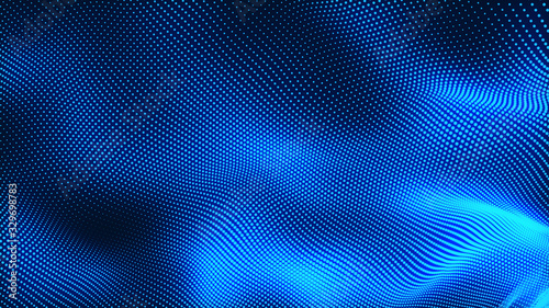 © Papapig, Obraz premium Dot white blue wave light screen gradient texture background. Abstract technology big data digital background. 3d rendering.