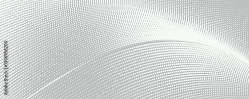 © Muhammad Muhdi, Naklejka premium Dot white gray wave light technology texture background. Abstract big data digital concept. 3d rendering.