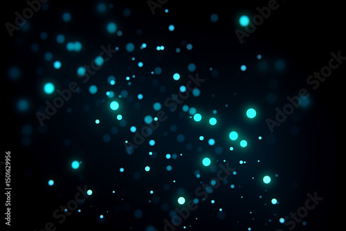 © Mikel Blazgad, Fototapeta premium Dots Neon Light Effects with Glowing Colorful Digital Particles – Abstract Sci-Fi Tech Overlay Dark Background