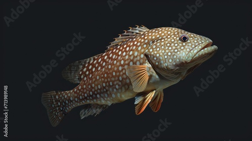 © hakule, Naklejka premium Dotted Grouper in the solid black background
