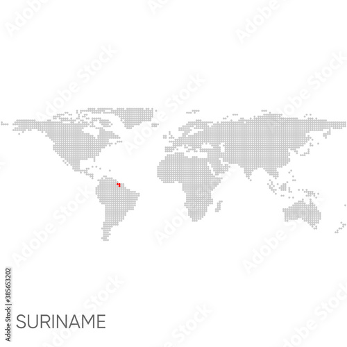 © prehistorik, Fototapeta premium Dotted world map with marked suriname