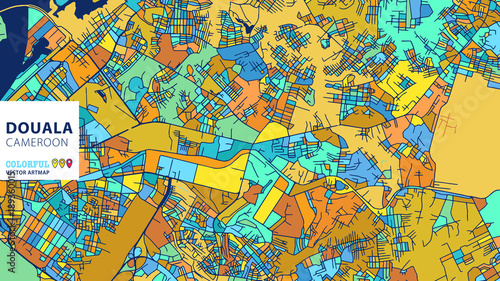 Naklejka premium Douala, Cameroon, Colorful Vector Artmap