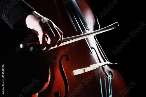 Naklejka premium Double bass player Hands playing contrabass