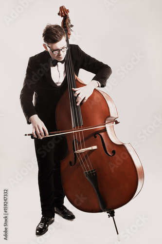 © Alenavlad, Fototapeta premium Double bass player playing contrabass