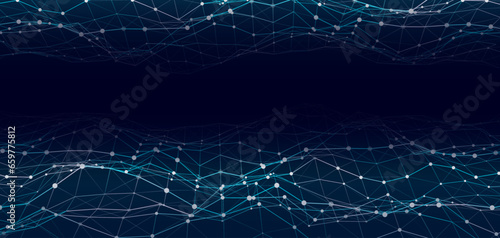 Fototapeta premium Double blue abstract technology wave with dots and lines. Flow of particles....