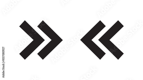 Fototapeta premium Double chevron arrows pointing in opposite directions represent navigation or flow and are isolated on a white background.