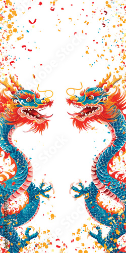 © Yee Suen, Obraz premium Double chinese dragon background wallpaper