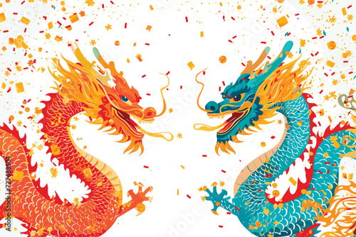 © Yee Suen, Obraz premium Double chinese dragon background wallpaper
