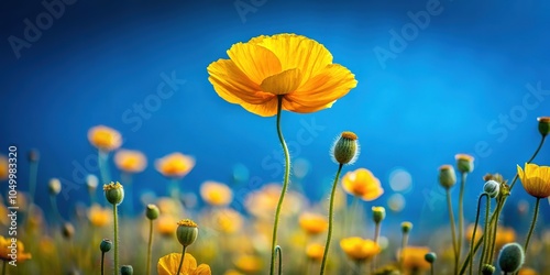 © Adisorn, Obraz premium Double exposure art: Blue sky meets vibrant yellow flowers.