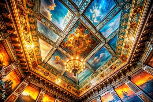 © Sirinporn, Obraz premium Double Exposure Ceiling Texture: Abstract Architectural Design Background
