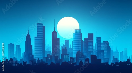© Aysel, Naklejka premium Double exposure, luxury modern highrise buildings and the city can use for business and finance background, blue tone