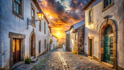 © Four888, Fototapeta premium Double Exposure: Medieval Marvao, Portugal - Narrow Street & Sky