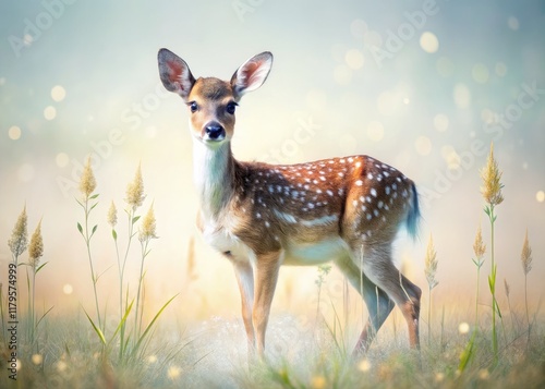 Fototapeta premium Double exposure merges spotted fawn and tranquil plains, creating surreal...