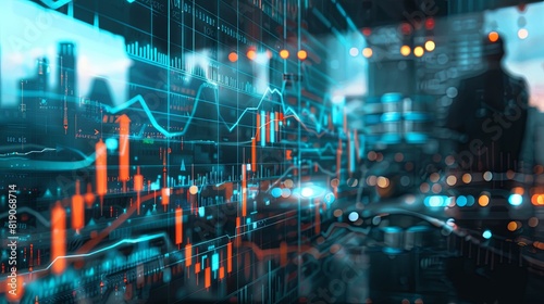 © Ben, Obraz premium Double exposure of businessman analyzing financial charts and graphs for effective money management, budgeting, and investment strategies. Concept of business finance and data analytics.