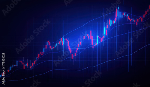 Naklejka premium Double exposure of candle stick graph chart with indicator with stock market...