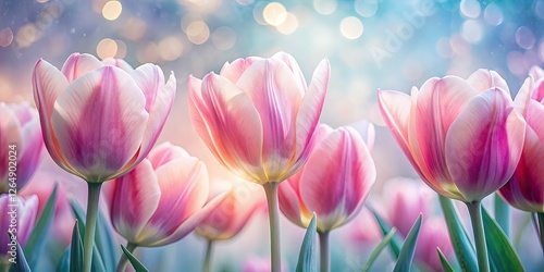 © Kaveepat, Fototapeta premium Double Exposure Pink Tulips Soft Light AI Art