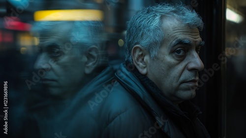 © InspirationDesign, Naklejka premium Double exposure portrait of mature man. Perfect for psychology and mental health awareness content.